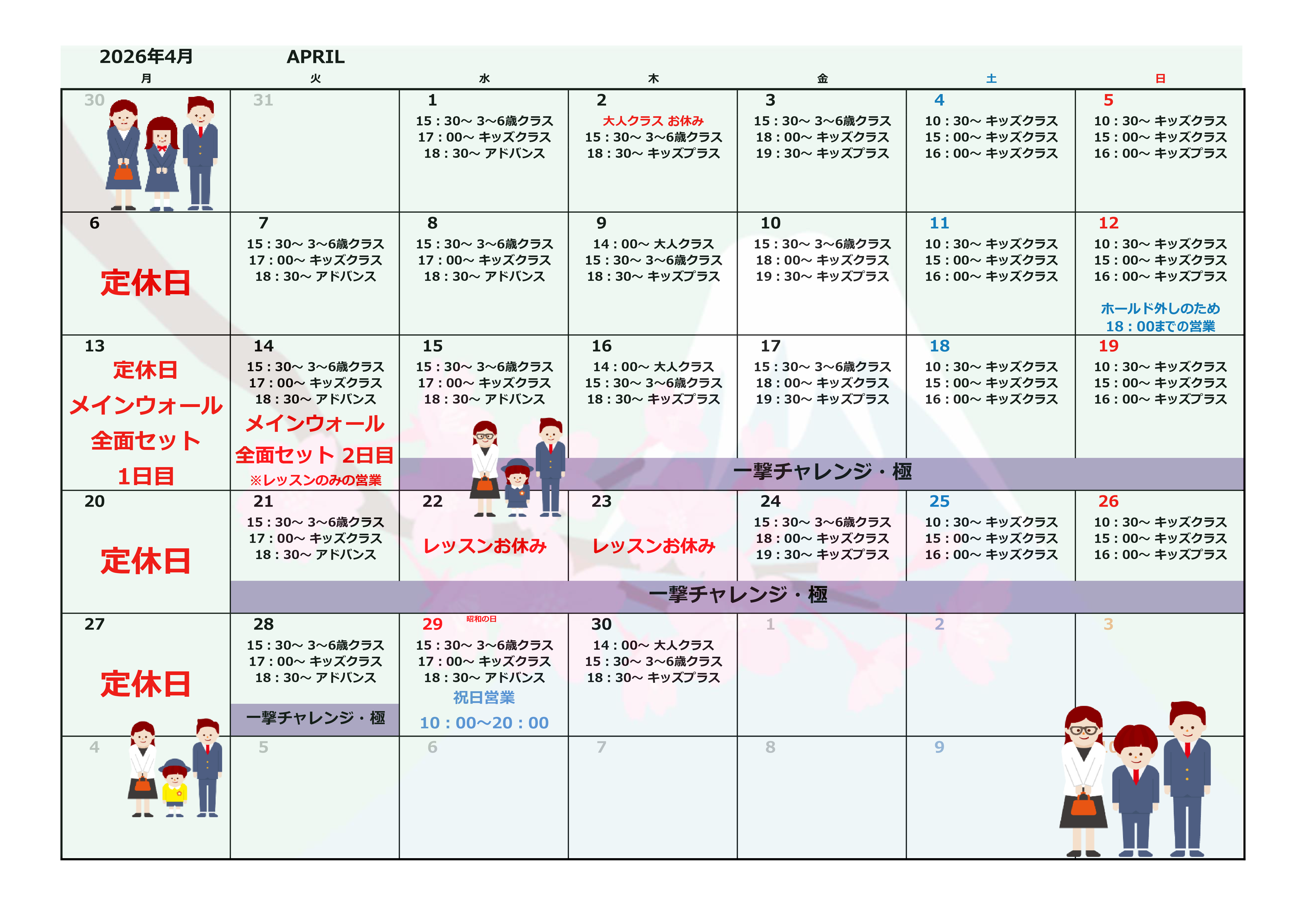 上記のカレンダー『キッズプラス〇〇クラス』からお好きな曜日を選んで入会できます♪